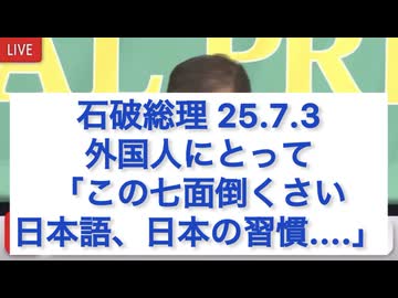 石破総理、外国人にとって「この七面倒くさい日本語、日本の習慣....」25.7.3