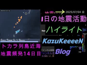 地震活動 2025年07月04日 金曜日 ハイライト トカラ列島近海 地震頻発 14日目