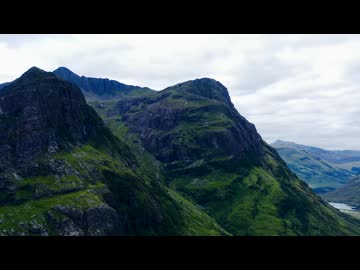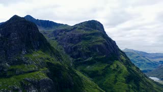 aerial drone shot of the three sisters in glen coe