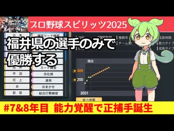 #4 能力覚醒で正捕手が誕生!エース格も育つ(7&8年目)|福井県の選手のみで優勝する『プロスピ2025』#オーペナ #プロ野球スピリッツ #ずんだもん #ゆっくり実況 #縛りプレイ