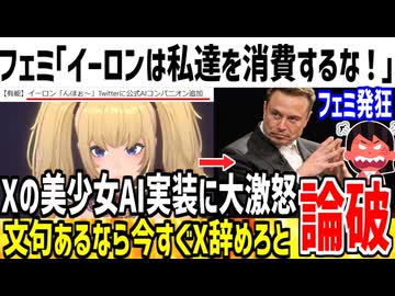 【フェミ発狂】イーロン「Xに美少女AIを実装するで!」→ツイフェミ「私達を消費するな!X辞めてやる!」
