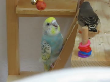 階段でウトウト&キョロキョロインコ キンカチョウも映る2025年7月17日