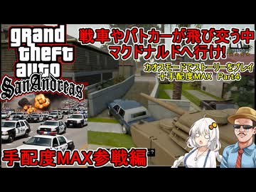 #04 【 GTASA:カオスモード +手配度MAX】戦車やパトカーが襲ってくる中マックへむかえ!:手配度MAX参戦編 #voiceroid実況 #ゆっくり実況