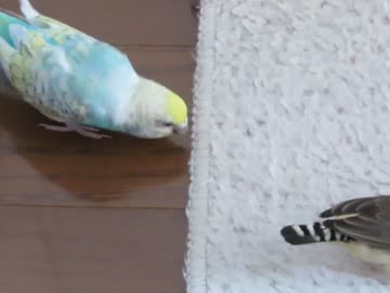 カーペットかじるインコ→カゴに入りたい キンカチョウも映る