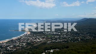 tilting down to reveal vast cityscape of illawarra south coast nsw on sunny day