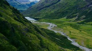 aerial drone shot of glen coe's loch achtriochtan 02