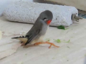 よろけそうな毛繕いキンカチョウ インコも少し映る
