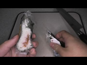 MINISTOPの国産梅の味わいと食感の梅のおにぎりを切りました。 #MINISTOP #梅 #おにぎり