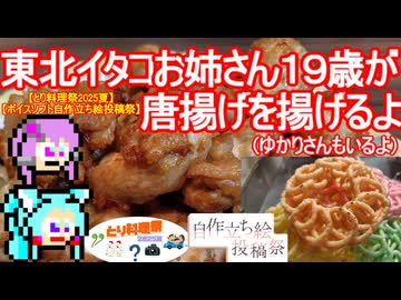 【とり料理祭2025夏】東北イタコお姉さん19歳が唐揚げを揚げるよ(ゆかりさんもいるよ)【ボイスソフト自作立ち絵投稿祭】