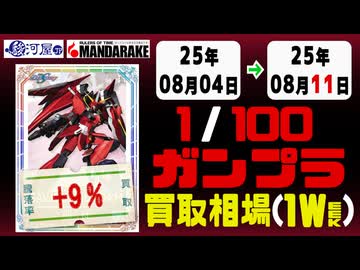 ガンプラ【1/100】 買取相場《138点/週》|08月04日~08月11日 <300円以上騰落> #ガンダム #プラモデル