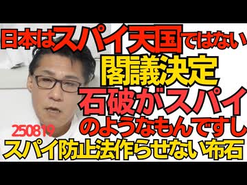 くつざわ/「我が国はスパイ天国ではない」石破内閣閣議決定「お前らがスパイみたいなもんだろ」意見多数 スパイ防止法の議論をさせない布石か250819