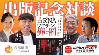 【生配信アーカイブ】8月23日21時〜国民連合 初の書籍 「mRNAワクチンの罪と罰」出版! 村上康文✖️荒川央✖️小野琢己✖️我那覇真子