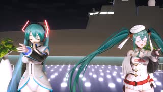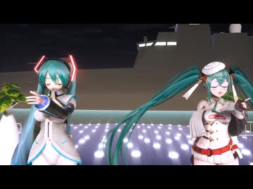 【初音ミク誕生祭2025】AB10Bボディおんだ式ミクとぬこ式レーシングミク2023で『海を泳ぐ月』【MMD夏祭り2025】