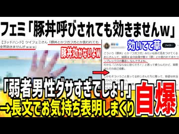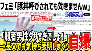 ツイフェミ「豚丼とか言われてるけど全然効いてませんw」→何度もお気持ち表明し効いてる事がバレてしまうwww