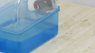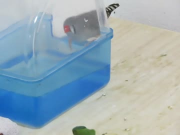 中々水浴びしないキンカチョウ→インコが気がつく→入った2025年9月13日