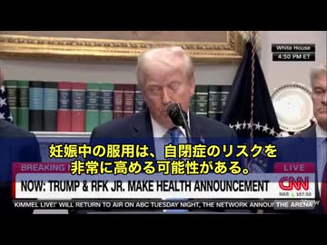 速報 トランプ大統領 妊娠中のタイレノール服用が、自閉症児リスクの可能性がある「良くない、はっきり言う」と強調。 FDAが医師に対し、アセトアミノフェン=タイレノールの使用について即時通知するよう指示