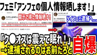 【悲報】フェミ「アンフェ男の個人情報手に入れた!晒す!」→法律違反と指摘され自爆した模様...