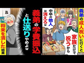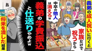 【スカッと】義弟の成人祝いで「中卒は消えろw」→義弟の学費と仕送りをやめたら将来が潰れた結果に?