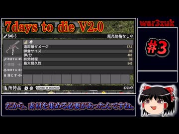 【7Days to Die V2.0 War3zuk 狂気】残酷な世界で生き残るPart3 「気をつけましょう」【ゆっくり実況 マルチ】