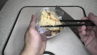 181円のローソンのぶなしめじのおにぎりを切りました。 #ローソン #ぶなしめじ #おにぎり
