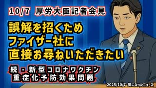 【続】◆厚労省とファイザー、重症化予防の見解は一致せず ~ ファイザーワクチン『重症化予防効果、見解なし』と記者報告【10月7日 厚生労働大臣会見】