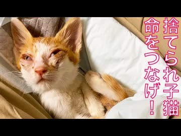 紙袋の中に捨てられてた子猫、重鎮猫から授かる