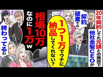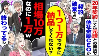 【ざまぁ】20年契約の元請との商談で他社の金髪CEOが契約破棄→「1つ1万でうちに契約してくれない?」相場10万が1万に…終わってるわ。