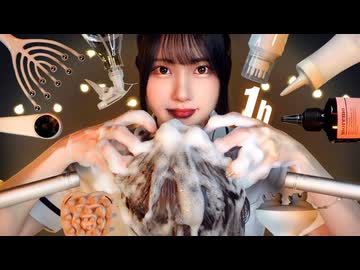 ASMRヘッドスパで眠りにつく1時間(炭酸泡,シャンプー,トリートメント,シャワー,頭皮マッサージ)