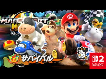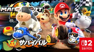てごわいライバルたちといきのこりのレース?!ウシさんとともにオンラインのサバイバルにいどみました!!【マリオカート ワールド】