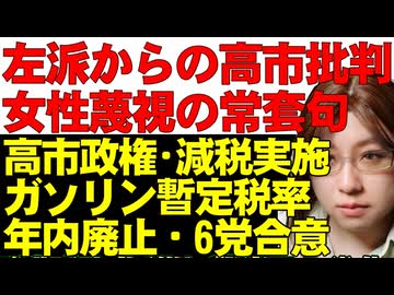 女性蔑視の常套句が次々と出現。高市総理への中傷は、女性差別するなと訴える女性から続々。石破政権で放置されていたガソリン暫定税率の廃止が与野党合意で決定。韓国の原潜建造のニュースなどへの私の考え