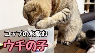 器用に飲んでると思ったら… 【野良猫】