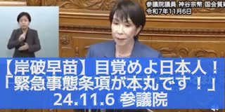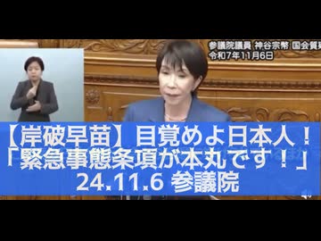 目を覚ませ!岸破早苗の本丸は緊急事態条項!25.11.6 参議院