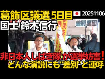 葛飾区議会選挙 鈴木信行候補に対ししばき隊が毎日選挙妨害!