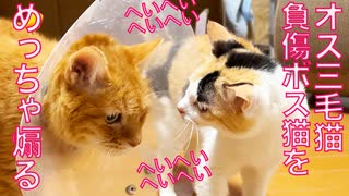 オス三毛猫、怪我したボス猫をめっちゃ煽る