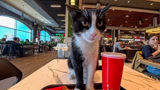ショッピングモールのフードコートで食事していたら猫がやってきた