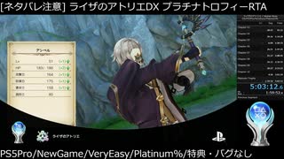 【トロコンRTA】ライザのアトリエDX(PS5版) 5時間3分12秒(無編集)【PS5Pro/NewGame/難易度VeryEasy以上/特典・バグなし/ネタバレ有】