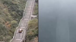 ホモと見る天国への階段登りを再現しようとしてガードレールを突き破る中国の自動車