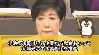 小池百合子 ソーラーパネル事業で裏金発覚 批判的な都議への嫌がらせも主導