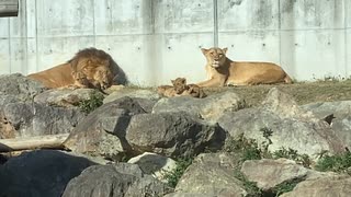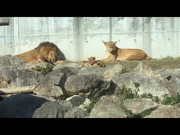 のんほいパークのライオン親子 2025年11月18日 12時36分頃