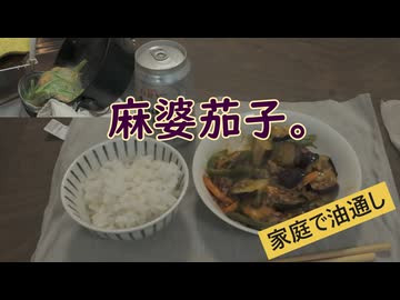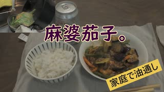 麻婆茄子。 家庭で油通し