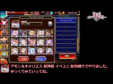千年戦争アイギス 魔神最終決戦 アモン&キメリエス 超神級 イベユニ 配布縛り