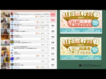 【64倍速】【19:09-07:09】【「紅白歌枠合戦2025」出演者オーディション(視聴数部門)】ちくらん ニコニコ生放送 [リアルタイムランキング]【2025/11/29】