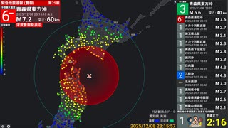 2025年12月8日 青森県東方沖 M7.5 最大震度6強など