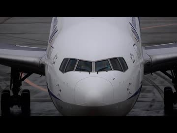 仙台空港 ANA B767-300 飛行機のワイパーの動作