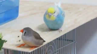 俺の後ろに立つなぁ~ 眠そうなインコとキンカチョウ2025年12月29日