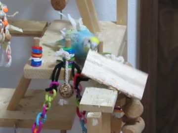 今年も木の板を落とすインコ 後半に下を向いたり歩いたりするキンカチョウも映る2026年1月3日