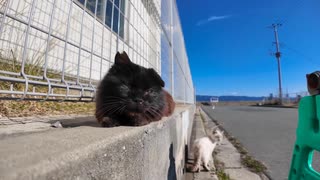 【初体験】腰トントンされた野良猫、思わず声が出てしまうwww