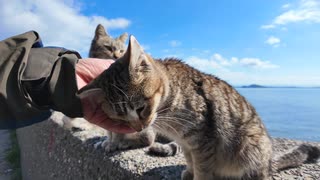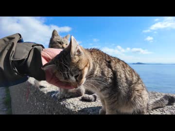 【天国】猫島の防波堤、撫でると全員寄ってくる件www