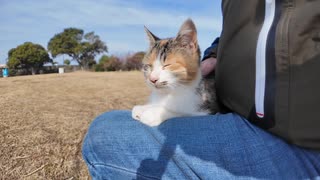 【!?】公園のベンチに座ったら猫がトコトコ来て当然のように膝に乗ってきた件