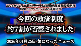 ◆今回の救済制度、約7割が否認されました ~ 2026年01月26日公表分予防接種健康被害救済制度 新型コロナワクチンによる被害認定